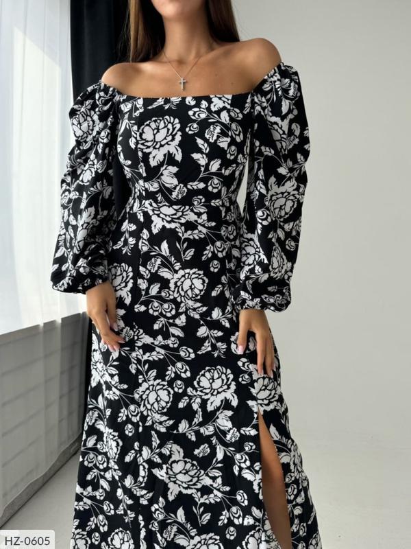 Сукня HZ-0601 Розміри: 42-44, 46-48 Сукні Тканина: софт принт Кольори: чорний, білий, синій, білий + зелений