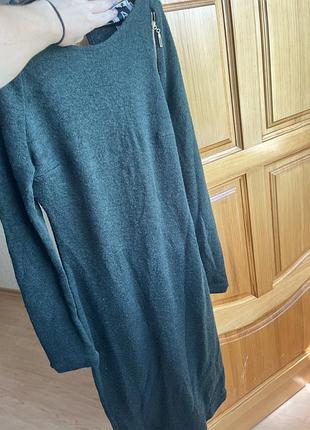 Плаття темно-зеленого кольору. У гарному стані. Тепле. Одягалось лише 1 раз під час вагітності на фотосесію. Зараз довге. На рост 157 см довжина-по коліно/трохи нижче. Відправлю Новою поштою або Укрпоштою. Підійде і на М, воно добре тягнеться.