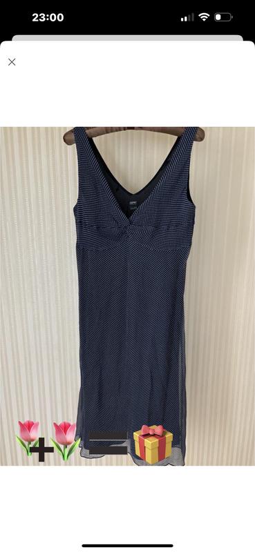 Плаття. Бренд: Esprit. Розмір:EUR -40 Колір: синій у білий. На підкладці. Склад: 100% шовк. Довжина виробу — 83 см. Б/у.