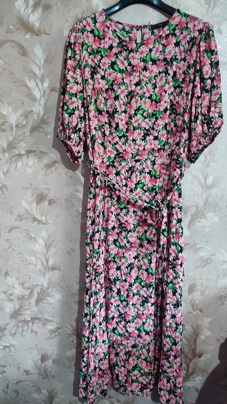 Плаття міді віскоза 100%, стан ідеальне, розмір вказаний 12, ззаду гумка, спереду два розрізи, довжина 118 см, пог 48 см, поб 55 см, плечі 38 см, має дуже крутий вигляд
