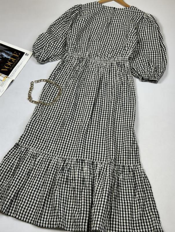 Довжина сукні 123 см, груди 55 см, талія 35 см. Тканина легенька, приємна. Присутній люрекс на тканині