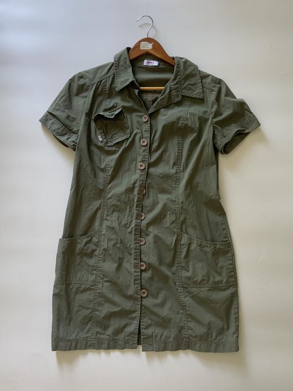 Сукня кольору хакі німецького бренду, на ґудзиках. Довжина до колін. Стан 4/5 Розмір XS/S/M. Гарно сидить як і приталено, так і оверсайз.