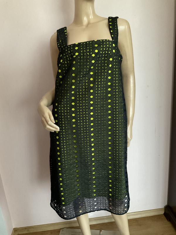 Цікаве якісне плаття. Перфорація. Без дефектів. Замок в боковому шві. Заміри в грудях 52 см в талії 52 см в бедрах 61 см довжина від плеча 103 см 1:9:24