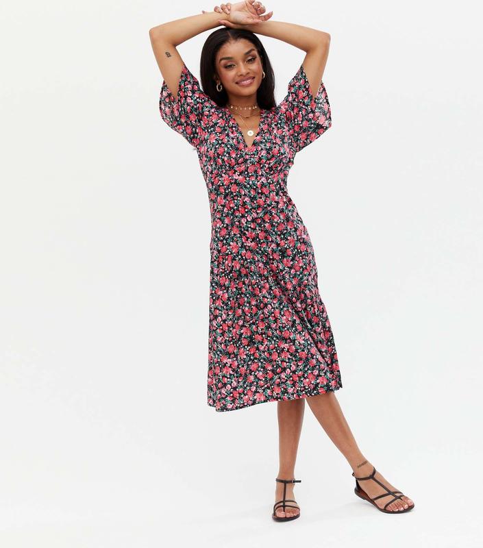 Готовы познакомиться со своим новым цветочным фаворитом? Скажите «привет» этому черному платью миди. - Мелкий цветочный принт - V-образный вырез - Короткие рукава-крылышки - Длина миди - Креповая ткань - Приталенный и расклешенный крой - Размер UK 12/EU 40/US 8/L - Бюст - 93 см, талия - 75 см, бедра - 99 см