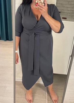 Шикарна сукня з поясом Склад тканини відсутній , на дотик як костюмна тканина Пог 55+, йде на запах і є виточки Пот 50 Поб запах 59 Рукав 42, біцепс 22, плечі 40