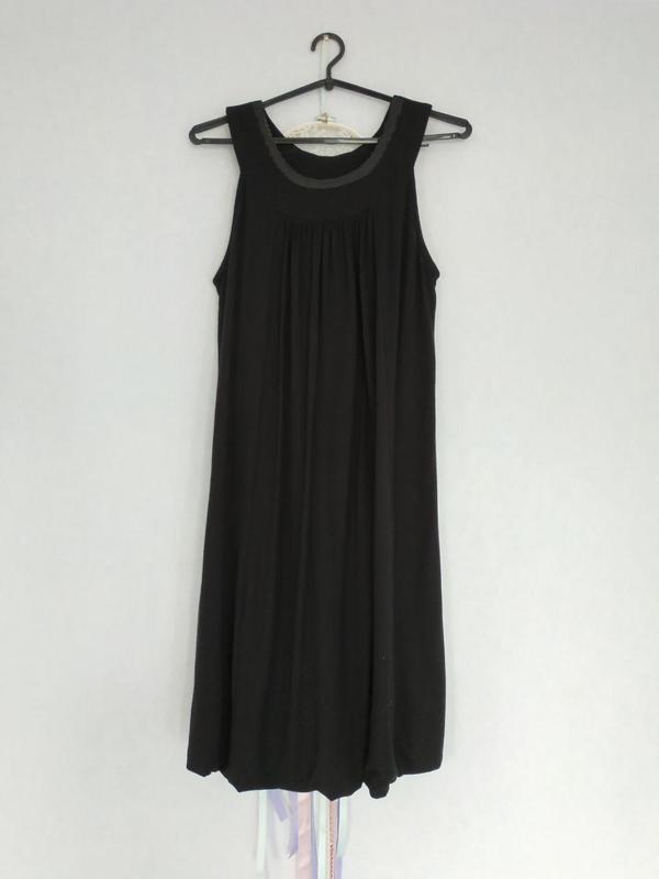 Відмінне чорне плаття з щільного трикотажу. Комір прикрашений чорними паєтками Довжина 96 см Напівобхват грудей ~43 см