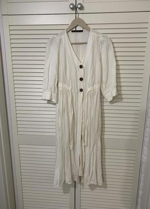 Платье белое из натуральной ткани.