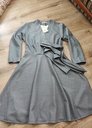 новеньке плаття з якісним складом тканини . стрейч , не склаує рухів , зручний крій. ідеально підходить для будь-якого якого заходу так і офіс / школа . принт в клітку з люрексом , не блистить але має родзинку . приьалене в талії , вільне в бедрах . в грудях до 90 см буде зручно. рукав 3/4 , + пояс . з біркою, розмір 44 ( С /м)