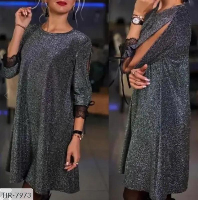 Сукня HR-7973 Розміри: 50, 52, 54, 56 Тканина: турецький люрекс на трикотажі + мереживо + сітка Кольори: синій, марсал, чорний, мокко