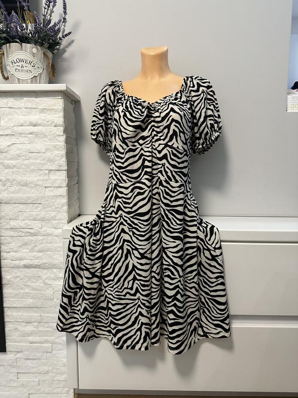 Сукня зебра Стильний фасон ,до низу розширене P.18 Пог56 Довжина100 Талія48 Бедра вільні Тканина тягнеться.