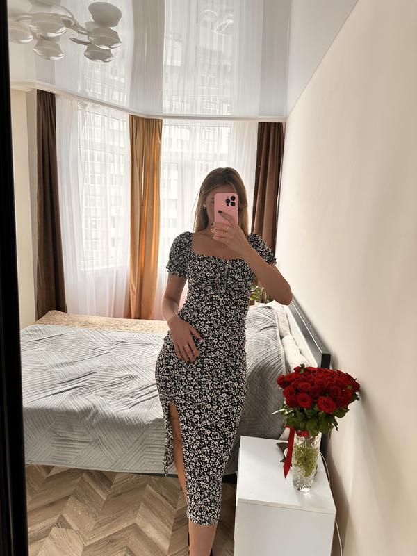 Очень красивое платье в размере хс-м ( ткань облегающая, красиво тянется) подчеркивает все формы и не подчеркивает недостатки. Красивый трендовый принт, легко стилизировать