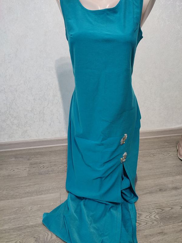 Жіноча сукня міді, плаття бірюзового кольору,розмір 46,позаду фіксується поясом на талії,гарний розріз,виглядає по фігурі дуже гарно