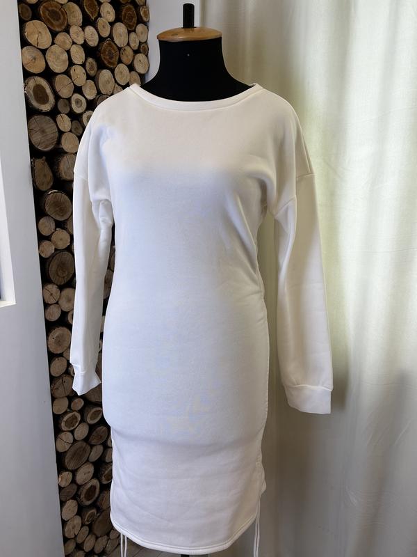 Новое платье на флисе, внизу регулируется длина затяжками,на размер S,M,L Замеры: Длина:101 Рукав спущенный, длина от горла:72 Полуоб.груди:59 Полуоб.талии:35 Полуоб.бедер:47