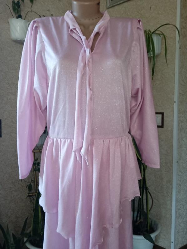 Стан дуже хороший . Колір блідо рожевий ,пудровий . Гарний ,фасон ,люреск дає образу св'ятковості .д 97, плечі 40,. пог 54,. пот39,. поб 75, низ 1,07 . Підписуйтесь на мій магазин ,щоб завжди знати про скидки та розпродаж . Заходьте ,оберайте декілька речей чим зробите собі економію на доставці . Оплата на картку . Доставка Укр.,. Нова пошта . Без повернення . При купівлі 2 речей - третя подарок (100).