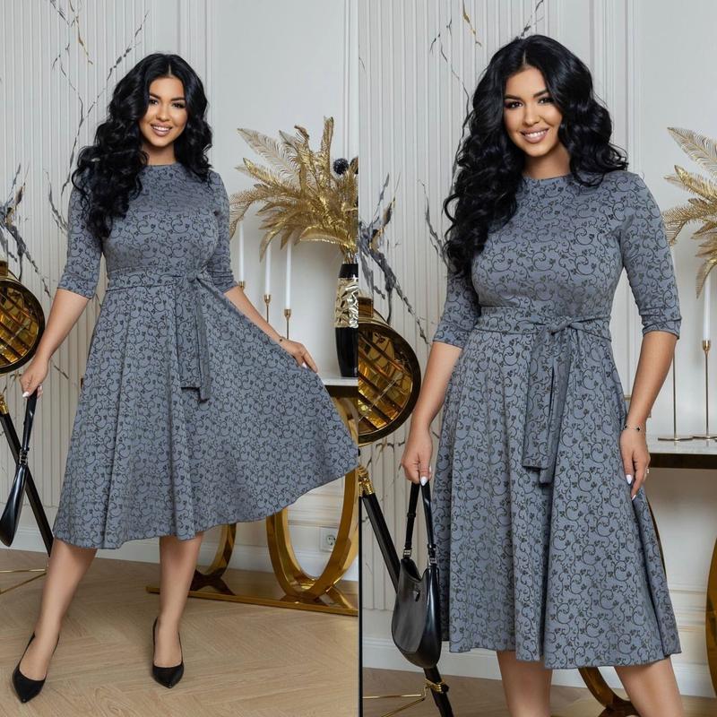 Сукня арт. 25.9сл Розмір: 46-48; 50-52; 54-56; 58-60 Тканина: трикотаж Джерсі (гарно тягнеться) Стильна сукня з обʼємною спідницею, рукав 3/4, пояс з основної тканини. Гарна тканина, приємна на дотик, високої якості, не кошлатиться, гарно тягнеться. Довжина сукні: 116 см. Довжина рукава: 40 см.