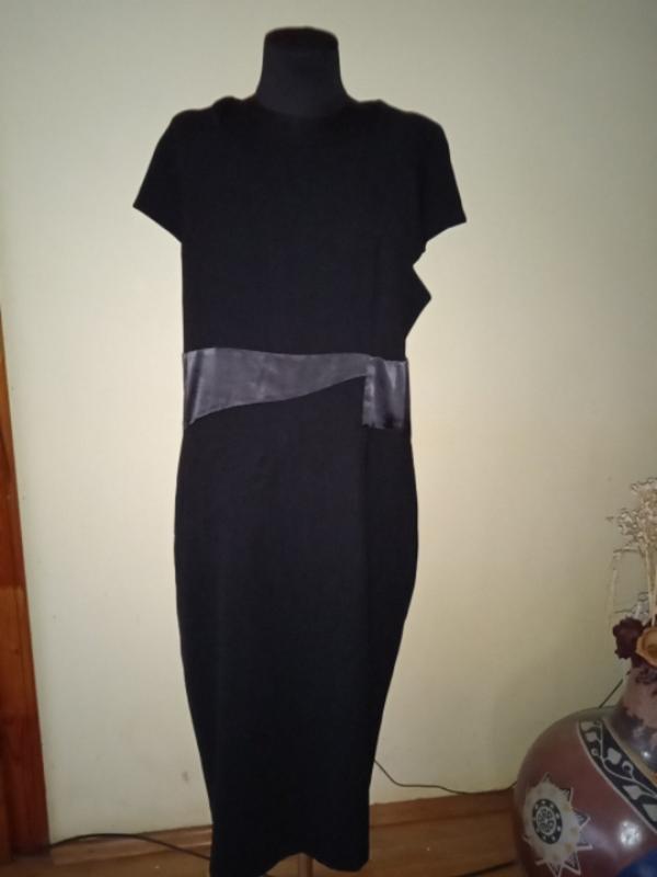 Довжина 110 см. Напівоб'єм в грудях 56 см. Стегна 60 см. Рукава від горловини 20 см. Вставка чорна ,як шовк. Досить важка ,щільна тканина,думаю що це поліестер. Тягнеться. Плаття може бути як святкове так і на кожний день. Дуже гарно виглядає. Насичений чорний колір.