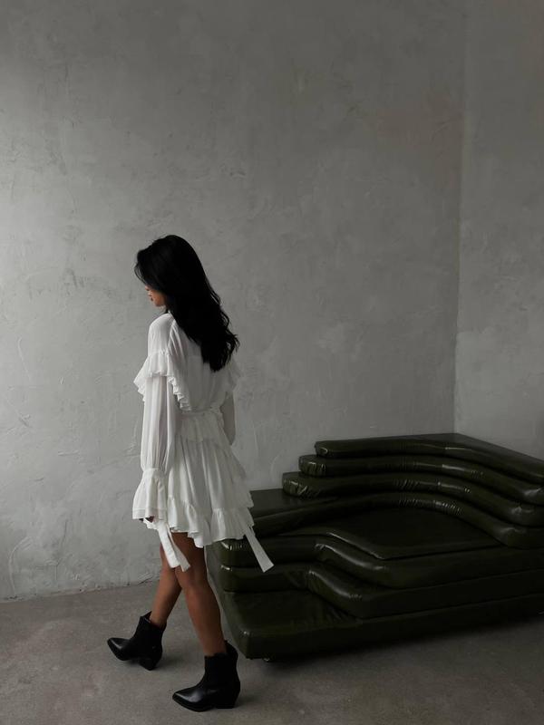 Сукня жіноча, міні, біла, вільного крою, з рюшами
