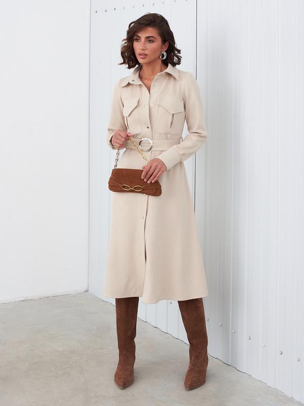 Сукня-сорочка із замші-діагональ. Виріб з відкладним коміром та довгими рукавами. Поличка доповнена накладними кишенями із клапанами. По талії розташовані шльовки. Комплектується поясом із основного матеріалу із пряжкою. Застібається на кнопки. Розміри: 44,46,48,50 Доставка: 💙 Укрпошта (повна передплата) 💛Нова Пошта ✨Відправка 2-3 робочі дні 🌿Є повернення та обмін