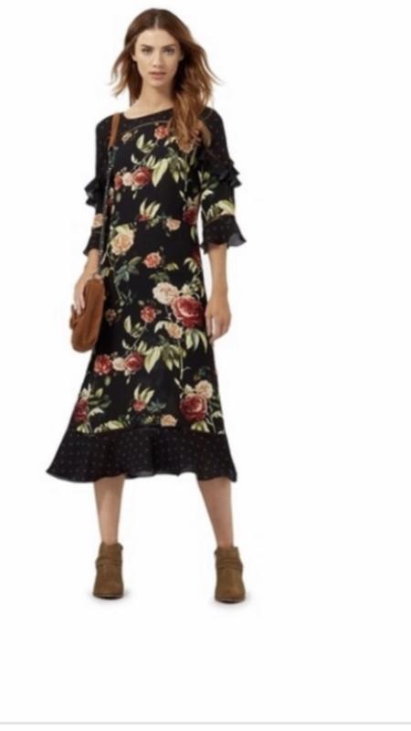 Красивое платье по фигуре в цветочный принт. Состояние нового. 16, 14 размер‼️отправка : полная оплата на карту Приватбанк . Через кнопку не отправляю‼️‼️