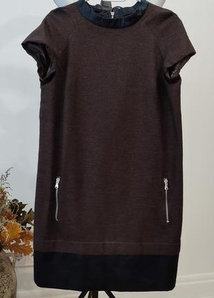 чудова сукня плаття туніка, вовна з віскозою, коричневого кольору з чорними елементами, блискавка по спині, має кишені, стильна та елегантна, відмінний стан