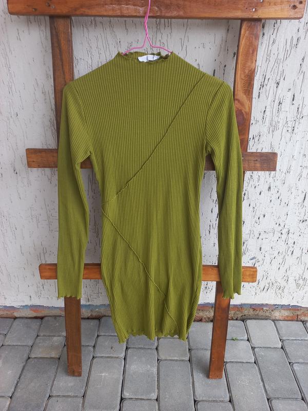 Платье, платье в рубчик, зеленое платье, платье по фигуре