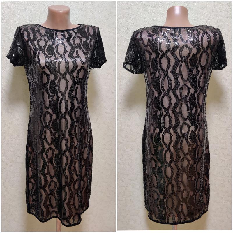 Добре тягнеться, не потребує прасування Непрозора підкладка під колір шкіри по всій довжині сукні окрім рукавів На бірці вказаний розмір 46 Заміри: довжина 92 см, під руками 46 см, пояс 40 см, стегна 49 см