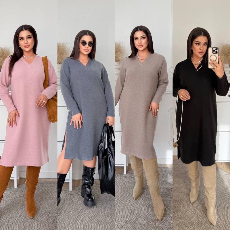 Плаття арт 2188 tar Тканина ангора вʼязка (щільна) Колір чорний, графіт, мокко, рожевий Розмір 48-50,52-54,56-58 Ціна 870 грн.✅ Плаття вільного крою із довгим рукавом та V-вирізом. Знизу по боках розрізи.
