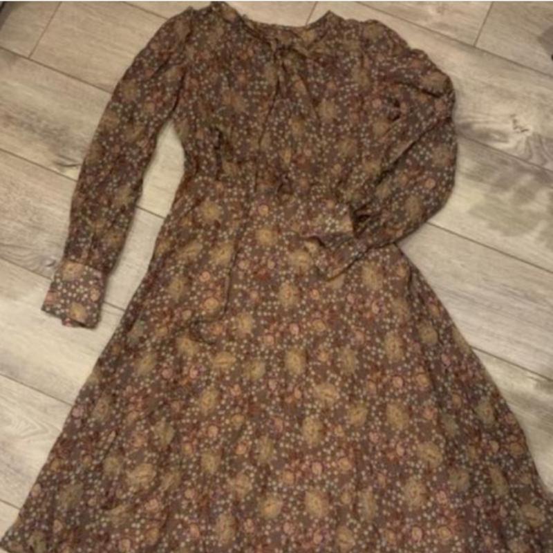 очень красивое миди платье в цветочек, состояние отличное, без нюансов и дефектов, размер М-Л! можно под поясок носить и без! с подкладом снизу Плечи 40 Пог 53 (свободно) Пот 40 Длина рукава 72 (подбирается в районе кисти манжетом Длина 108