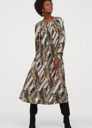 миди платья известного бренда H&M отличного качества в идеальном состоянии. 100%вискоза, приятная к телу, не просвечивается. На талии и внизу рукавов манжеты-резинка. Рукав-реглан вокруг горловины присборенная ткань. длина - 128см, п.г.-57см, п.талии-32,5-55см длина рукава от горловины-72,5см