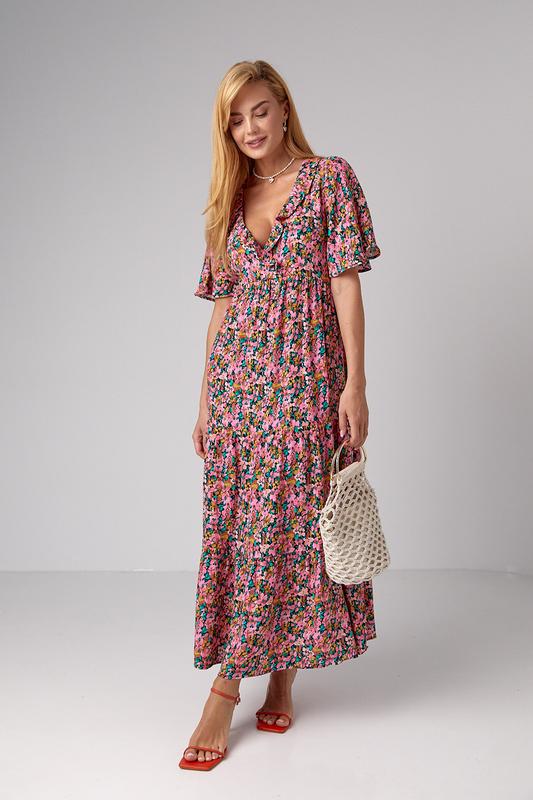 Довга сукня з оборкою та квітковим принтом - рожевий цвет, xs (є розміри)