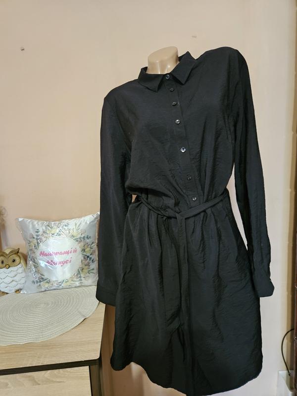 Стильне чорне плаття, приємна до тіла тканина. Нове. Заміри: довжина - 96 см; ПОГ - 57 см; ПОТ - тягнеться до 57 см; ПОБ - 69 см. рукав - 64 см.