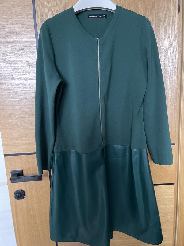 Платье изумрудного цвета с верхней трикотажной частью и с искусственной кожей чуть ниже та...