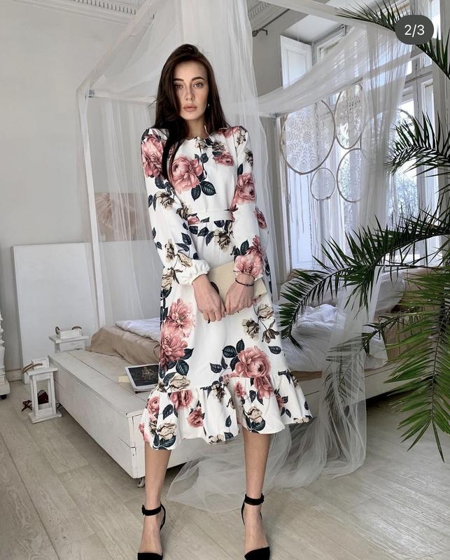 Сукня з квітковим принтом 🌸 Розмір 42-44, тканина креп діагональ Майже нова, одягалась один раз на свято 👗