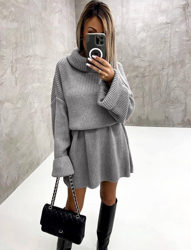 Вязаное платье с теплым воротником и с объемными рукавами ❄️