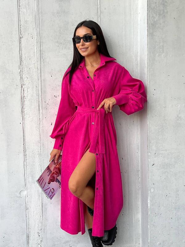 Стильна сукня з вельвету (086) ▫️Тканина - вельвет; ▫️Розміри :42-44,46-48,50-52,54-56 ▫️Кольори :малина ,чорний ,хакі,беж ▫️ Ціна 975 гривень Стильна молодіжна сукня ,в якої ти будеш виглядати стильно і практично .Довжина міді .Одягається під пояс .Застібується на кнопки .Стильний рукав -«Фонарик».