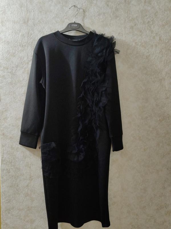 Плаття спорт люкс.ідеал оборки з Фатину 20 см, кишеньки з боків довжина 102 довжина рукава від горловини 72 грудь 53 стегна 52 рівний крій оверсайз дуже ошатне