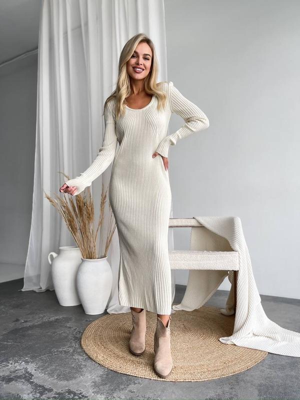 Приталена сукня з рельєфним візерунком — ідеальний вибір для елегантного образу! ✨ Рельєфний смугастий візерунок створює витончений силует, подовжуючи вертикаль і додаючи графічності. Приталений крій, довгі рукави та круглий виріз роблять цю модель справжньою знахідкою для стильних образів. 👗 Характеристики: • Розмір: універсальний • Довжина: 121 см • Обхват грудей: 66-100 см • Обхват талії: 60-90 см • Обхват стегон: 80-110 см • Склад: 30% шерсть, 70% акрил • Кольори: мокко, молочний 🤍🤎 • Ціна 999 грн🌷 Модель 1095 — витонченість і комфорт в одному образі! ❤️