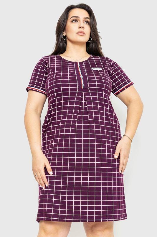 Сукня повсякденної клітини, колір бордовий, 231r6616