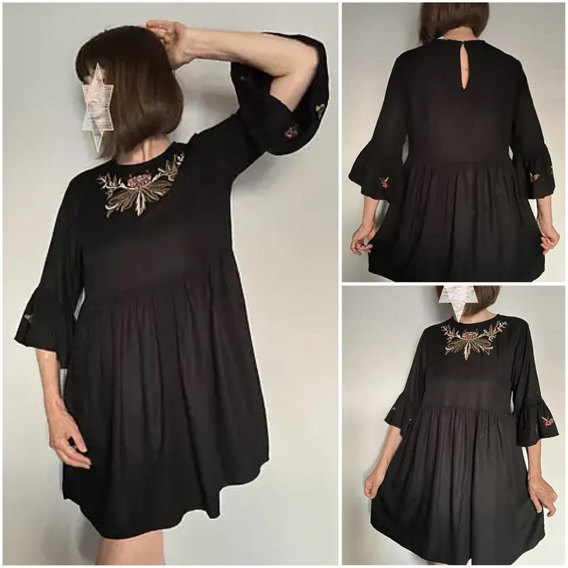 Чорна сукня-туніка з вишивкою вільного крою 46-50(хl)