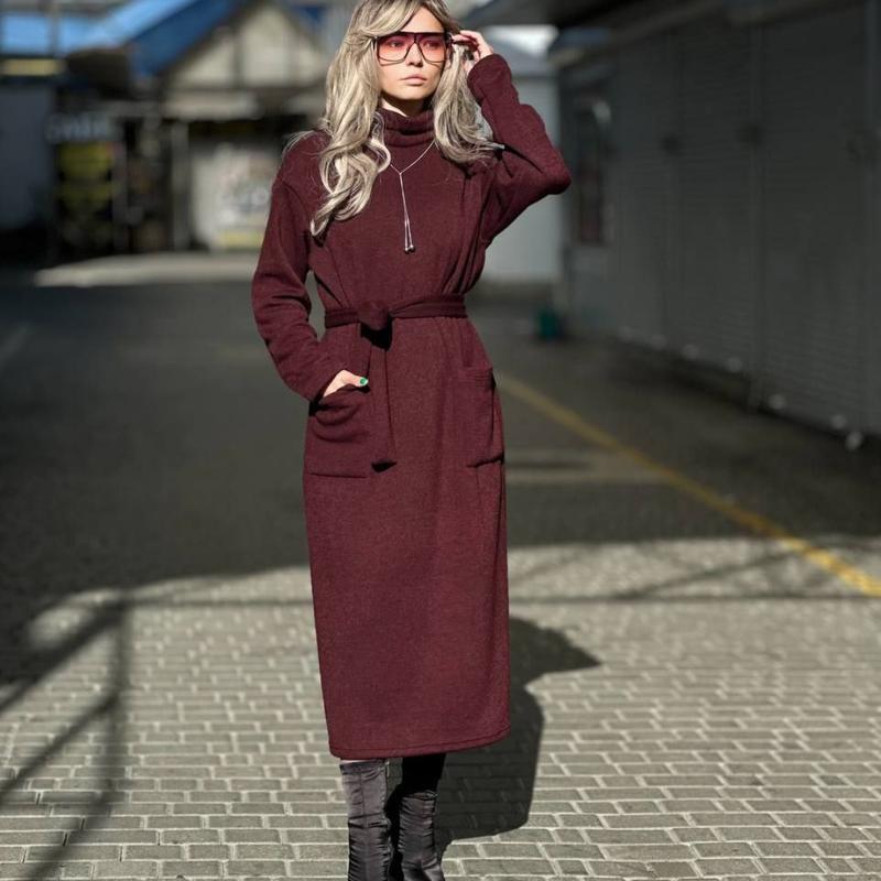 Платье из очень качественной плотной ангоры 🍂 платье миди с поясом и горлом стойкой, плат...
