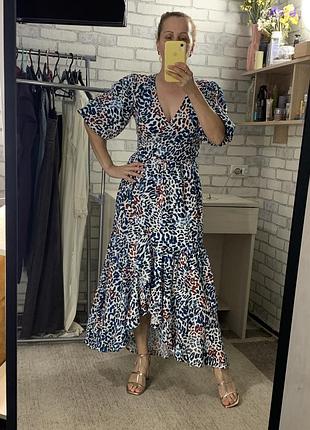 Нова яскрава сукня, прекрасна на літо і для фото! Бірка з магазину присутня! 50% віскози, 37% котону і 13% льону Розмір ХS По грудях 44, талія 34, стегна 55, рукав 33, довжина 122 см