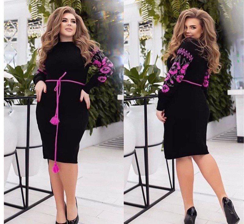 🎀Представляем стильную платье с изящными цветочными 😀 узорами на рукавах⭐️ Платье выполнено из мягкой и теплой ткани🧶, идеальной для прохладной погоды.🤌 🦋Пояс с кисточками подчеркивает талию и создает женственный силуэт. Это платье👗 идеальна для повседневной носки, прогулок или встреч с друзьями. Она станет вашим любимым нарядом на осень и зиму!🌹 Теплое вязаное платье в этно стиле «Любаба» 😍😍 ▫️Материал:Вязаный🧶 трикотаж ▫️Страна производитель Украина🇺🇦 ▫️Размер:oversize 46-52 ▫️Состав пряжи 50% вовна, 50% акрил ▫️Сезон:Зима, Весна, Осень ▫️Цвета: черный с желтым, черный с красным,черный с малиной,бордо,джинс Рост девушки на фото 168 см Длина по спинке 107 см Длина рукава 67 см П. О.Г 49 см П.О.С 52 см Замеры в ненатянутом виде. Изделия очень хорошо тянется.