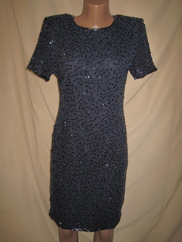 Синее платье в пайетках Сanda р-р14, вискоза с бисером и пайетками,подкл полиэстер, ПОГ48,ПОТ40,ПОБ46,длина91,плечи40, отличное, 200грн