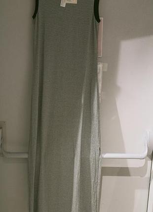 Платье от известного бренда в сером цвете с люрексом. Сядет на размер: s,m. Последнее фото как сидит платье в другом цвете. Материал очень приятный к телу. Сбоку разрез.