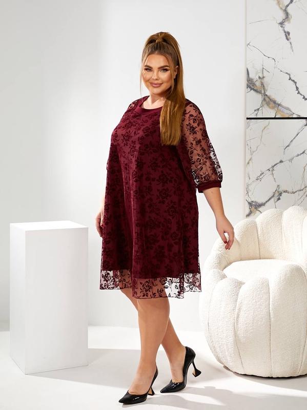 Платье №1244. Цена 1200грн Размер :50-52, 54-56, 58-60, 62-64. Цвет: синий, марсала, зеленый, электрик. . Ткань про-во Турции: креп дайвинг, флок на сетке. Эффектное платье на тот случай, когда необходимо обратить на себя внимание. Эта модель подчеркнет прелесть вашей фигуры и деликатно скроет недостатки. Объемные рукава сделают ваш образ изысканным и незабываемым. Это платье способно превратить любую девушку в звезду вечера!