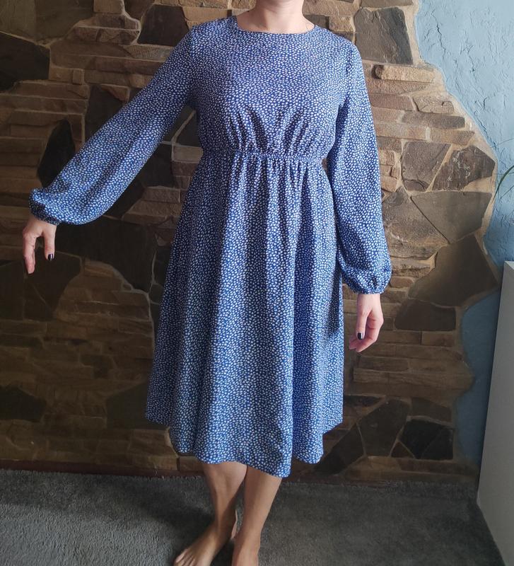Сукня синього кольору з цікавим принтом. Приталене резинкою Розмір 50 xl Склад поліестер