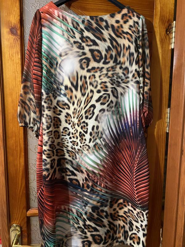 Дуже гарна сукня може бути як на свято так і на кожен день. Трикотаж типу кремплін, Шифоновий рукав в грудях 52 стегна 56 тканина добре тягнеться рукав 44 довжина Сукні 99