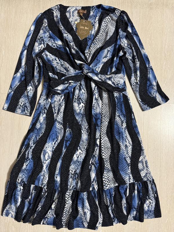 У наявності гарне плаття фірми JOLIE MOI. Розмір вказаний 16, але за замірами красивий сяде на 14. Склад: 94% поліестер і 6% еластану.тканина дуже м'яка, приємна до тіла та дуже добре тягнеться. НОГ-52.тягнеться до 60, довжина плаття-100, плечі-40, довжина рукава-47, напівоб'єм у талії-44+щі тягнеться, напівоб'єм у стегнах приблизно 60+щі тягнеться.