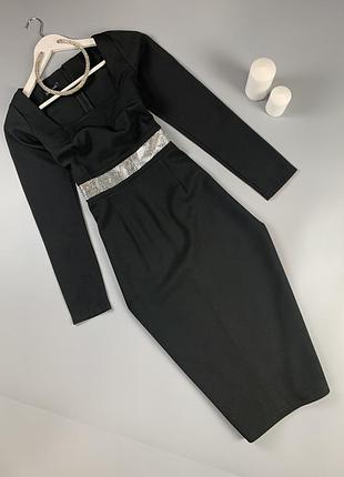 Сукня міді в благородному🖤чорному кольорі з щільної тканини від Paler_mod. Пояс спереді всипаний камінням. На спинці потайна блискавка. Ідеальний крій. Виглядає 😍 Якість відмінна. ▪️Склад: 73%бавовна+22%поліестер+5%лайкра ▪️Розмір: S ✍️Заміри: ПОГ-42см ПОТ-37см ПОБ-47см Довжина рукава-63см Довжина виробу-109см