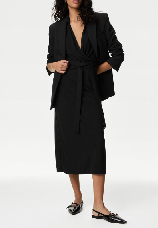 Платье миди с элегантным воротником и v-образным вырезом, m&s collection